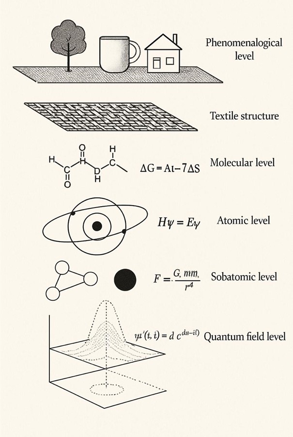 Gündelik yaşamımızdan basit bir örnek alalım: Masa örtüsü. Normal gözle baktığımızda, masa örtüsünün ipliklerden dokunmuş düz ya da desenli bir varlık olarak görürüz. Aynı anda çözünürlüğü arttırarak ve matematiksel düşünme becerisi ile çalışırsak aşağıdaki yeni katmanları gözlemleyebiliriz: