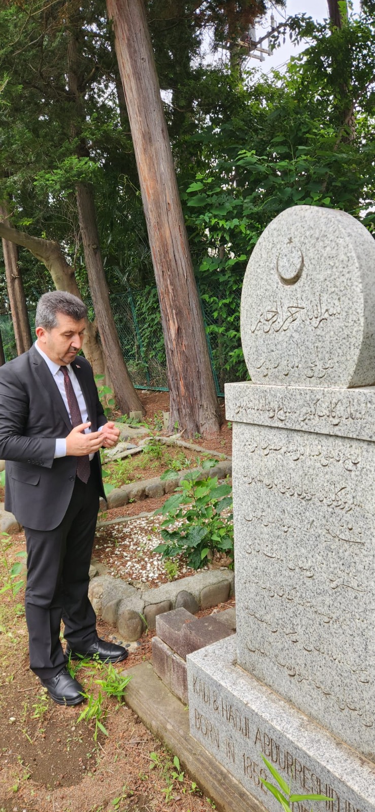 2. Dünya Savaşı’nda hayatını kaybeden Japon askerlerinin mezarlarının bulunduğu Yasukuni Mezarlığı’nı ziyaret eden heyet daha sonra fikir adamı, seyyah, gazeteci ve din âlimi Abdürreşid İbrahim Efendi’nin kabrini ziyaret ederek dua okudular.