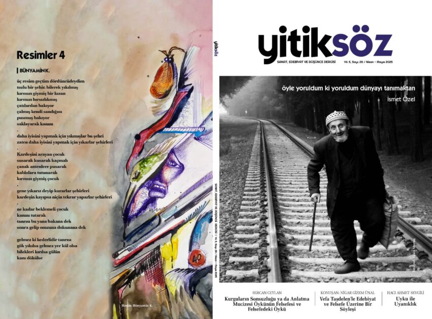Yitiksöz 28 İsmet Özel’in “öyle yoruldum ki yoruldum dünyayı tanımaktan” dizesini demiryolunda yürüyen yaşlı bir amca görseline yerleştirerek başlıyor. Yirmi sekizinci sayısıyla Yitiksöz, insanı derinden etkileyen bahar mevsimine “Merhaba!” diyor. Bu sene Ramazan ayının ve Bayramının ardından bizlere bir serçe ötüşü gibi ulaştı Yitiksöz sadece iyilikten ve güzellikten yana tavır koyarak.